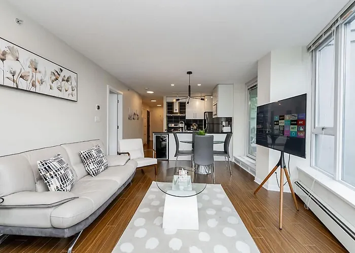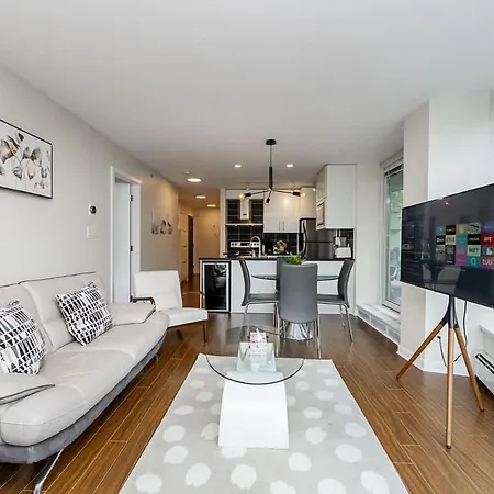 The accommodations at this well-appointed condo feature roomy layouts adorned with modern furnishings, ensuring a serene escape after a day of exploration. Each residence boasts sweeping city views, giving you a backdrop of the dynamic Vancouver skyline. With both a pool for relaxation and a gym for fitness enthusiasts, you'll find ample opportunities to unwind or keep active during your visit.